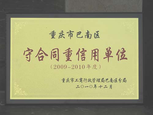 On Dec.2010,Chong Qing Ba Nan district Administration Bureau for Industry and Commerce through market research and audit, titling CHONG QING JILI YUN FENG Industry (Group),Co.,Ltd as 2009-2010 Honorable Enterprise. The honor means JILI wins the recognition from goverment ,markets, and customers with the honest management attitude, and the JILI people will always keep the loyal and positive attitude strive for JILI’s bright tomorrow.